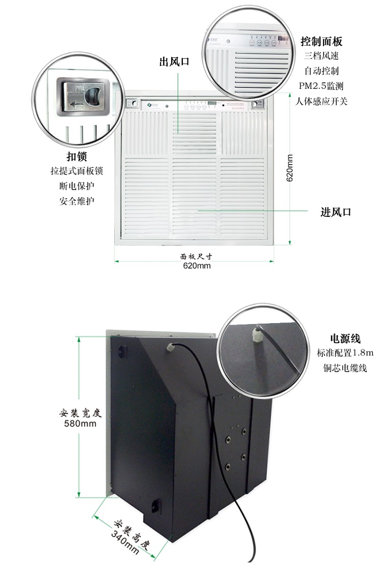 申瑞吸頂式空氣凈化器,內(nèi)置高壓靜電場(chǎng)(電子集塵室)+層流過(guò)濾網(wǎng)+活性炭吸附+負(fù)氧離子功能,高效凈化清新室內(nèi)空氣。